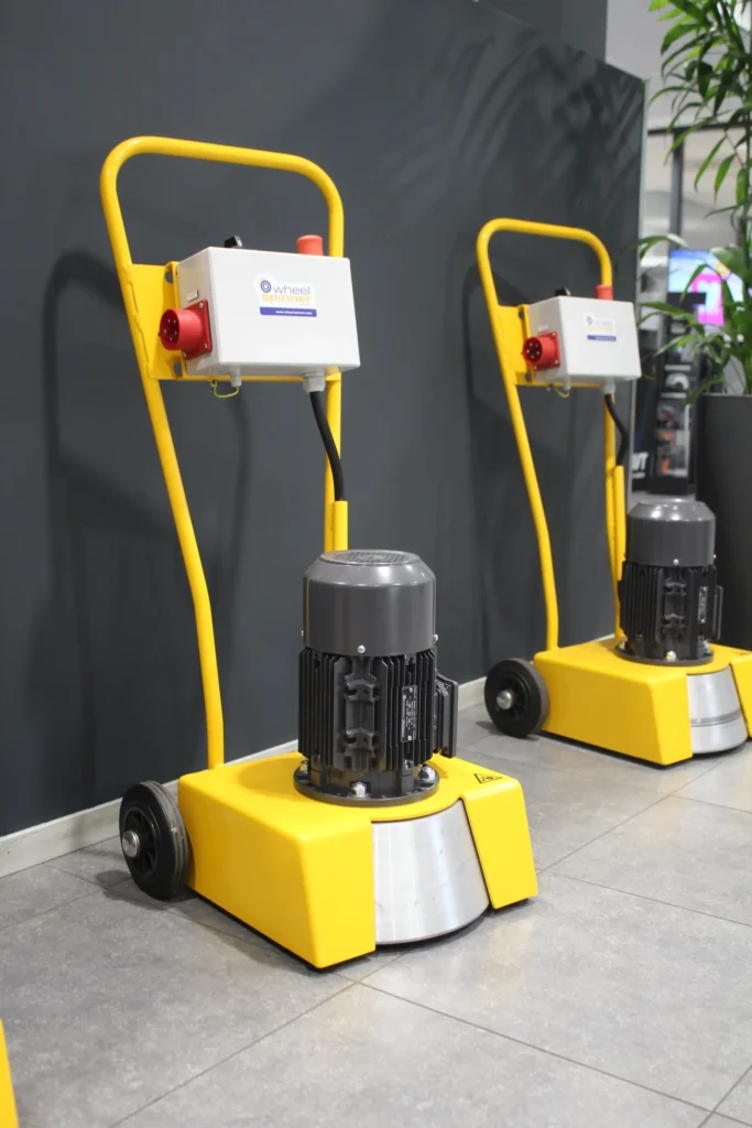 The Wheelspinner rotates a wheel at high speed by pressing the drum against the tyre. This simulates driving conditions and makes it easy to detect wear on wheel bearings. Its simple operation and built-in safety features make it safe and efficient to use.